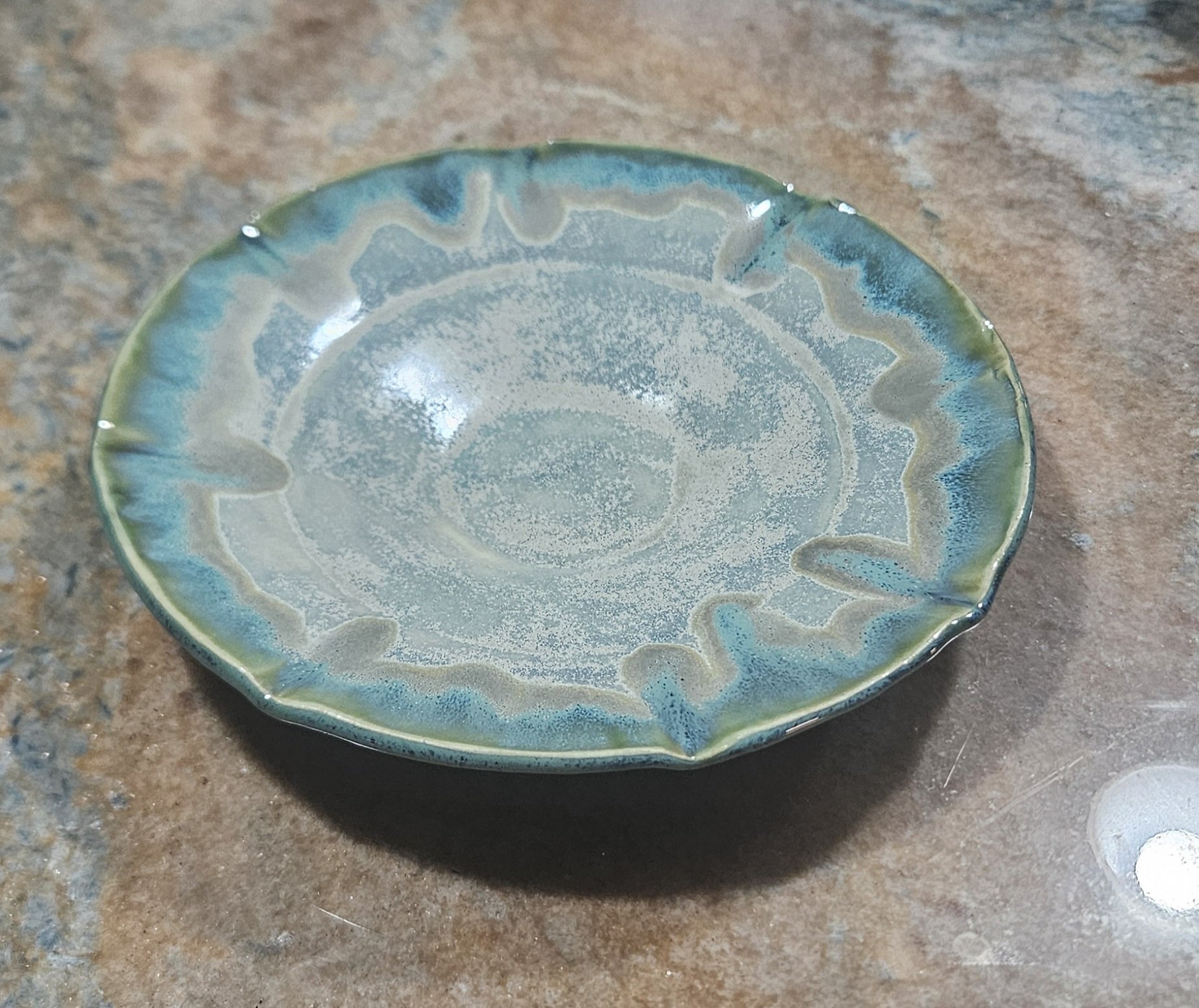 Shop › Green Flux Platter Image 1 of 1 Green Flux Platter $45.00 Approximately 9” diameter decorative serving platter. Add To Cart Added! Approximately 9” diameter decorative serving platter.